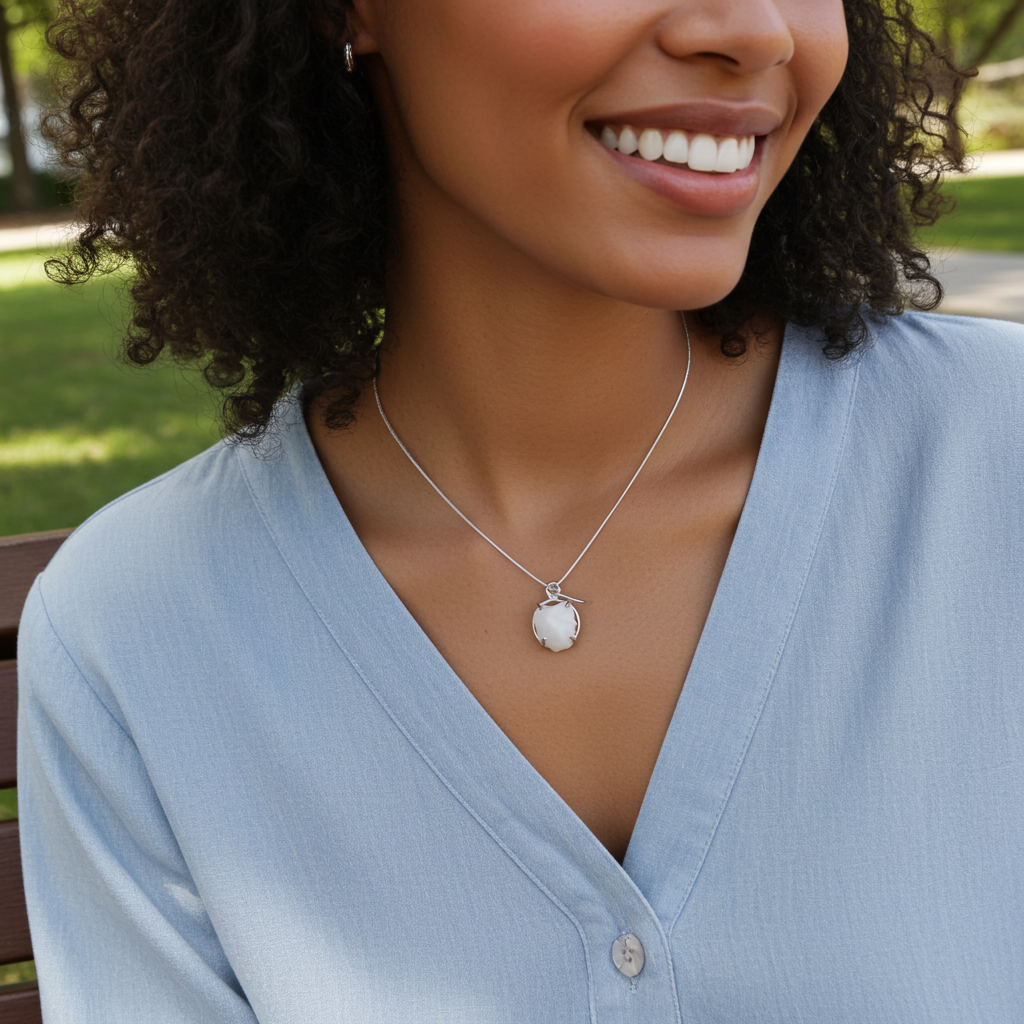 - Ensure the pendant hangs close to the neck, touching the heart chakra